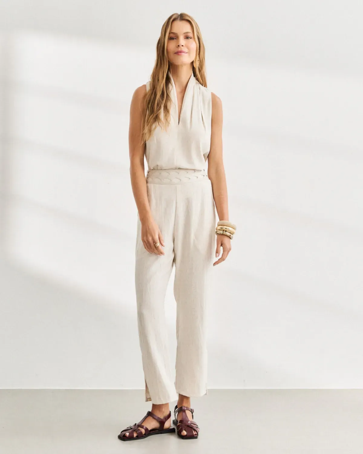 A Regata Histórias traduz a elegância natural em uma peça sofisticada e atemporal. Confeccionada em viscose com linho, apresenta textura leve e toque macio, proporcionando conforto e frescor ao longo do dia. O decote em V profundo valoriza o colo com delicadeza, enquanto a modelagem sem mangas e o caimento fluido criam uma silhueta leve e alongada. Em tom mascavo, a peça reforça uma estética orgânica e versátil, ideal para composições que transitam com facilidade do casual ao sofisticado. Essencial no guarda-roupa, é perfeita para quem busca estilo com naturalidade e autenticidade. DETALHES DO PRODUTO Regata em viscose com linho Decote em V profundo que valoriza o colo Modelagem sem mangas Caimento leve e fluido Textura natural sofisticada Design elegante e atemporal DICAS DE STYLING Combine com calças de linho ou alfaiataria para um visual elegante e natural. Use com peças em tons neutros para uma proposta sofisticada e atemporal. Aposte em acessórios dourados para valorizar o look. Perfeita para transitar do dia para a noite com leveza e estilo.