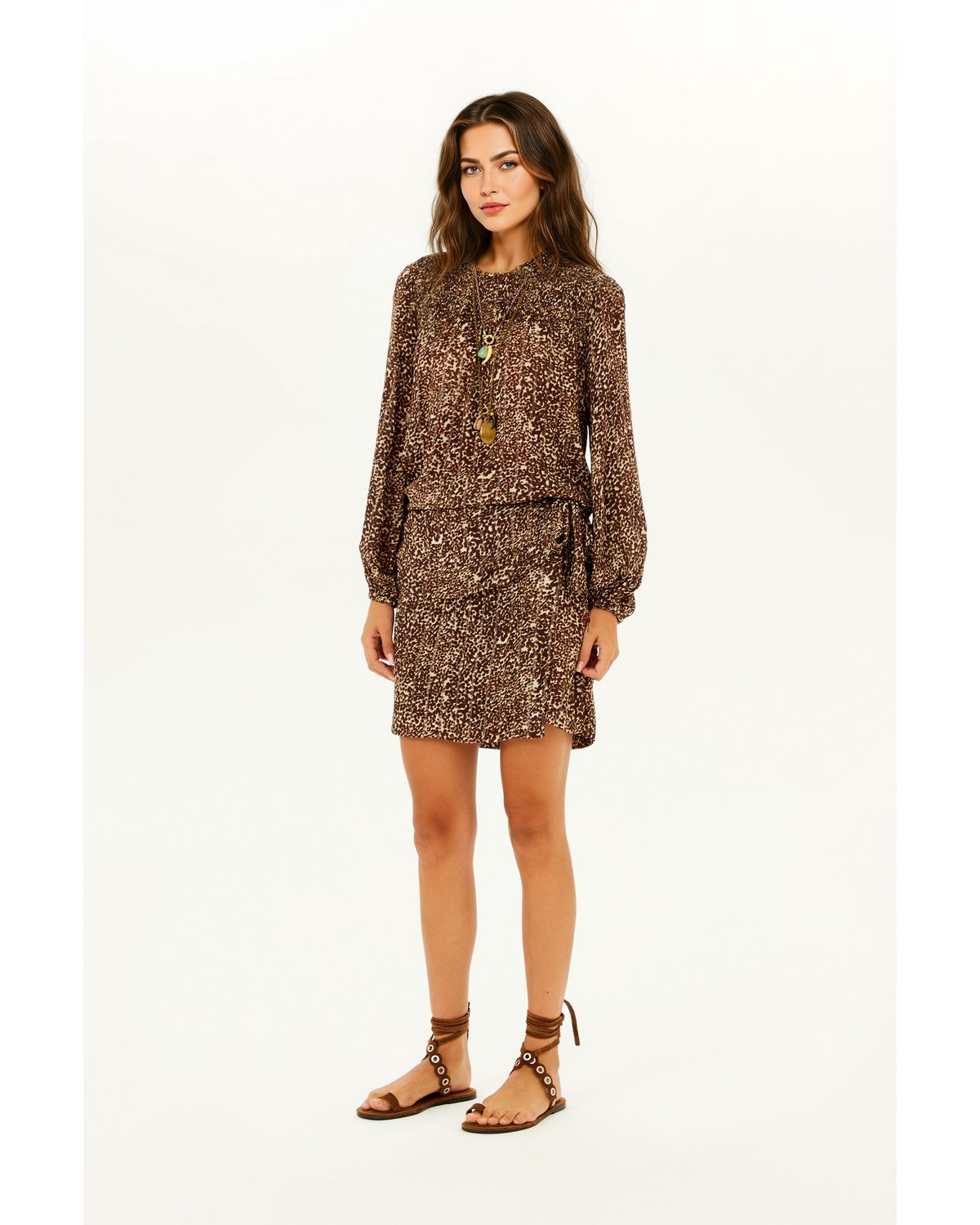 A Saia Curta Estampada Transpassada traduz leveza e feminilidade em uma proposta fluida e cheia de movimento. Com estampa orgânica em tons terrosos, a peça traz um visual natural e sofisticado, característico do estilo boho contemporâneo. A modelagem levemente ajustada ao corpo valoriza a silhueta com delicadeza, enquanto o efeito transpassado com amarração lateral adiciona charme e cria um caimento dinâmico e elegante. O tecido leve reforça a fluidez da peça, tornando-a ideal para diferentes ocasiões. Versátil, é perfeita para composições que transitam entre o casual e o sofisticado com naturalidade. Assinada pela Maria Filó, marca reconhecida pelo estilo feminino, leve e autêntico, a peça traduz delicadeza, fluidez e um olhar sensível sobre o vestir. DETALHES DO PRODUTO